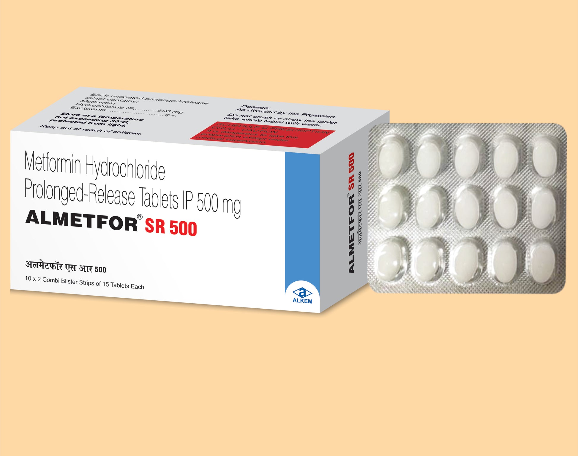 Almetfor-Sr 500 Tablets (15'S) 15's Metformin 500 mg by Alkem1