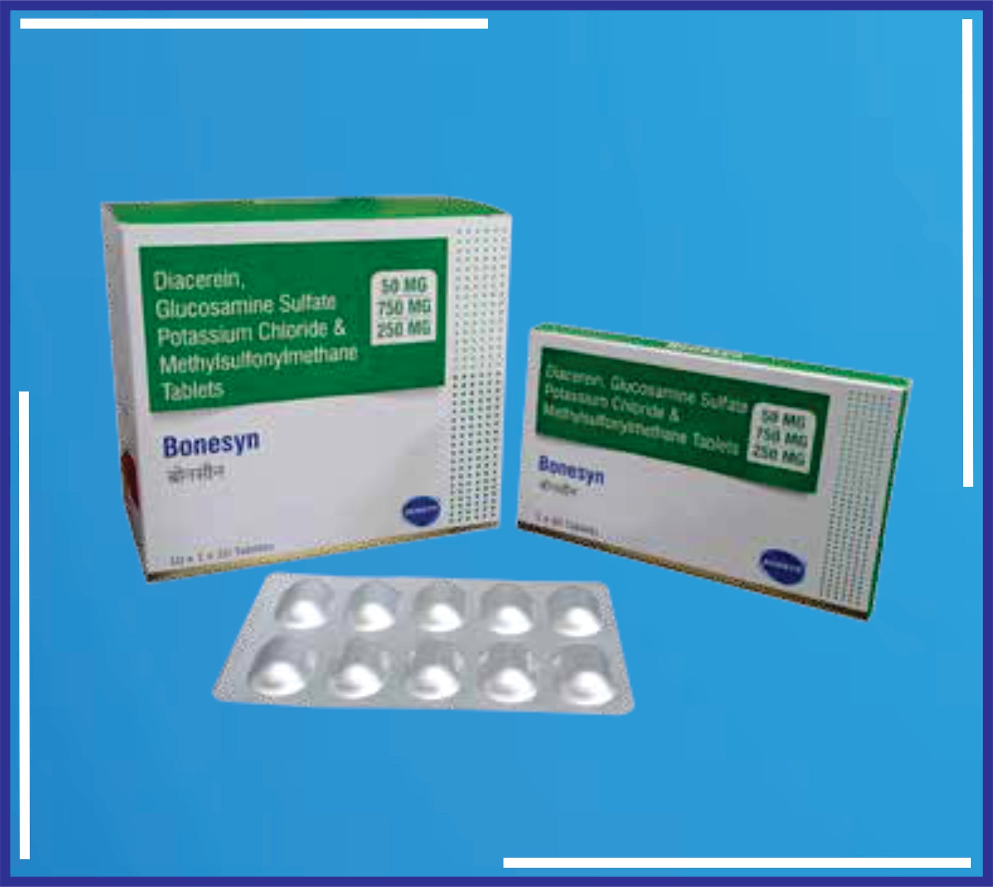BONESYN TAB (ALU-ALU) 10X1X10 (Diacerein Ip 50Mg + Glocosamine Sulphate Potassium Chloride Usp 750 Mg + Methylsulfonylmethane Usp 250Mg)by Kemsyn