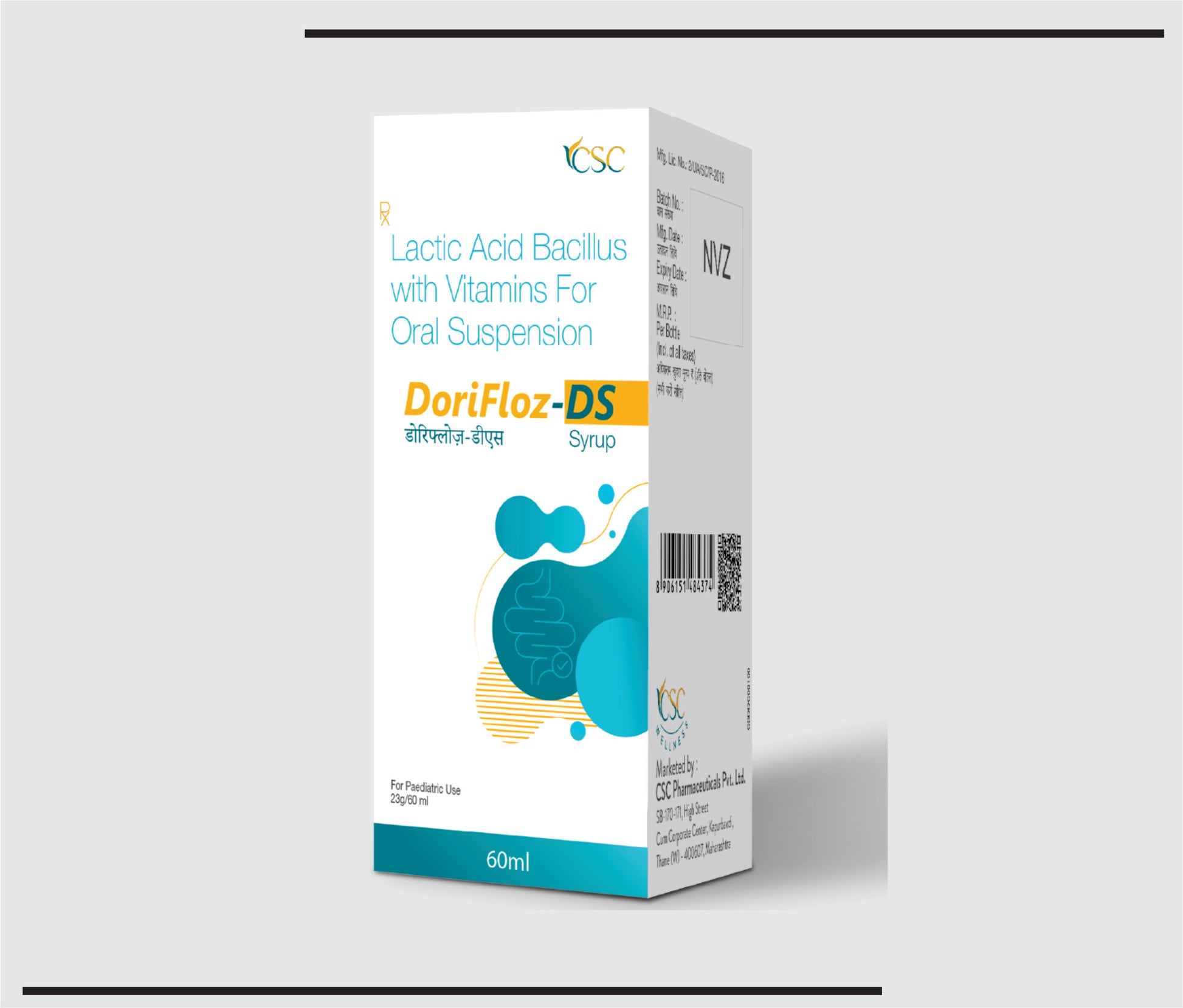 DoriFloz DS 60 ml (60ml) Lactic Acid Bacillus (40 × 10?) Spores + Nicotinamide 15 mg + Folic Acid 100 mcg + Vitamin B6 1.5 mg + Element Zinc 5 mg by CSC