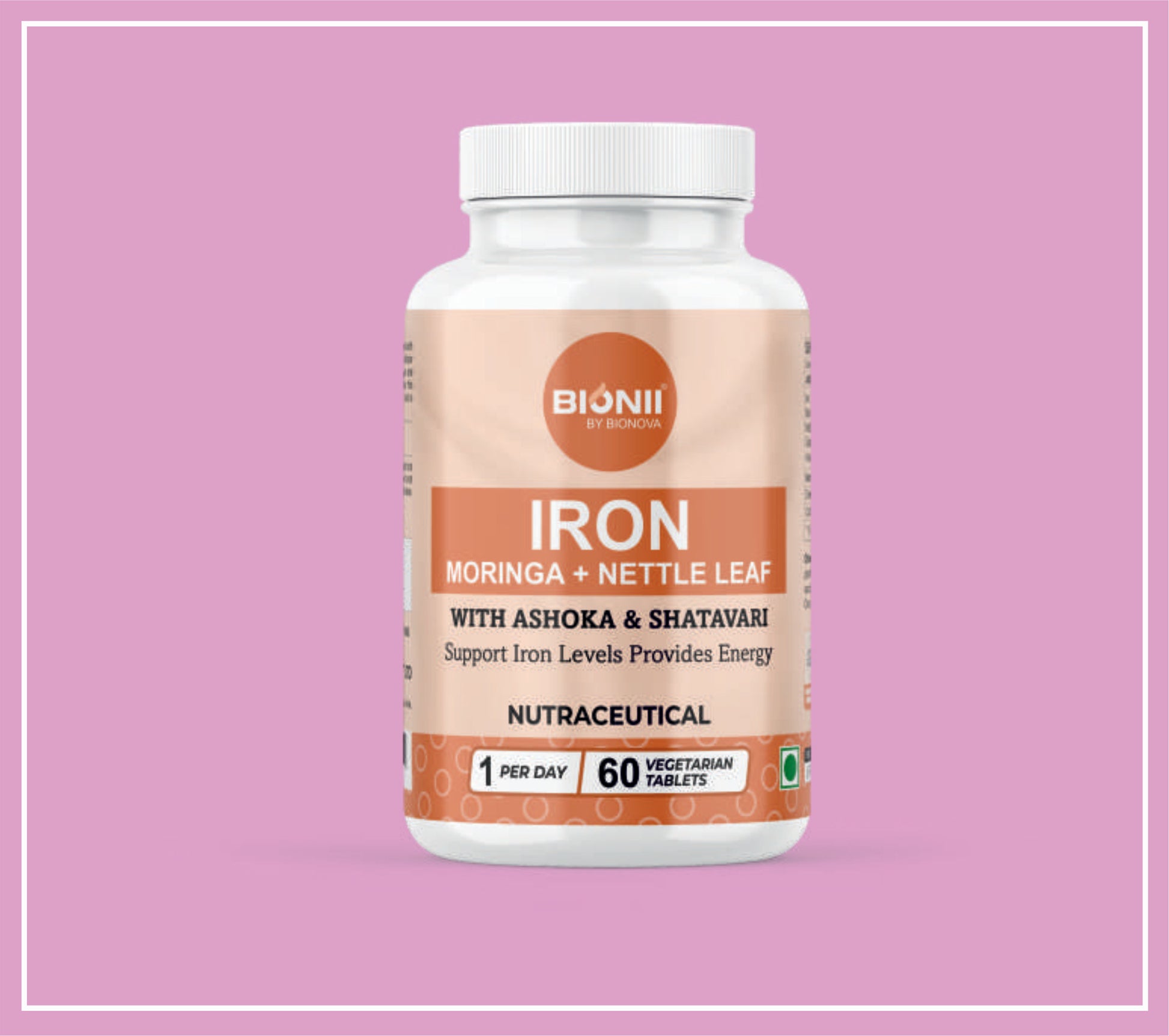 IRON TABS 60's (Iron 17mg, Moringa-50 mg, Nettle Leaf-50 mg, Saraca Indica Extract-50 mg, Asparagus Racemosus Extract-50 mg) by Bionova