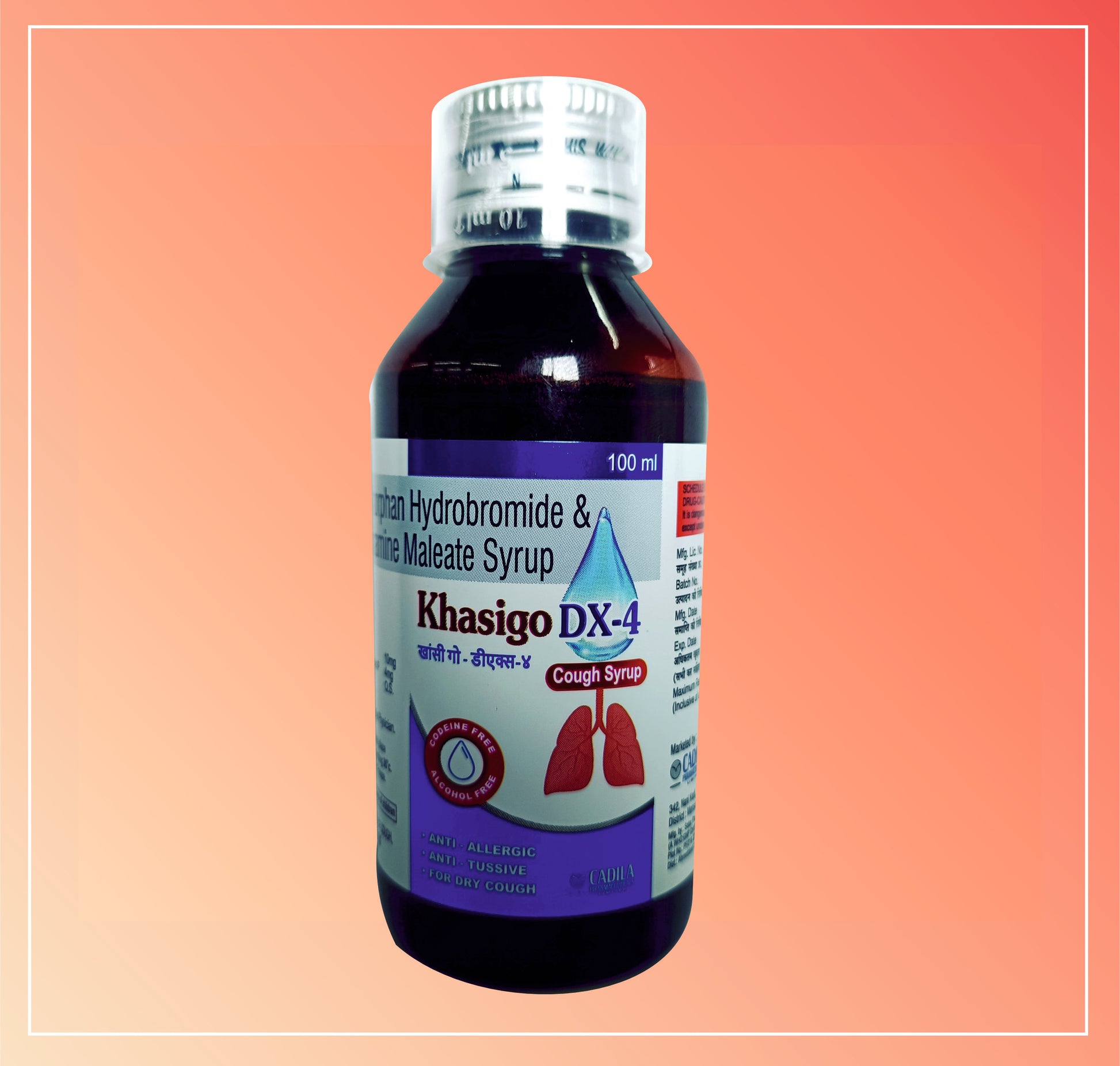 KHASIGO DX 4 (1X100 ML) Dextromethorphan Hydrobromide 10 mg + Chlorpheniramine Maleate 4 mg