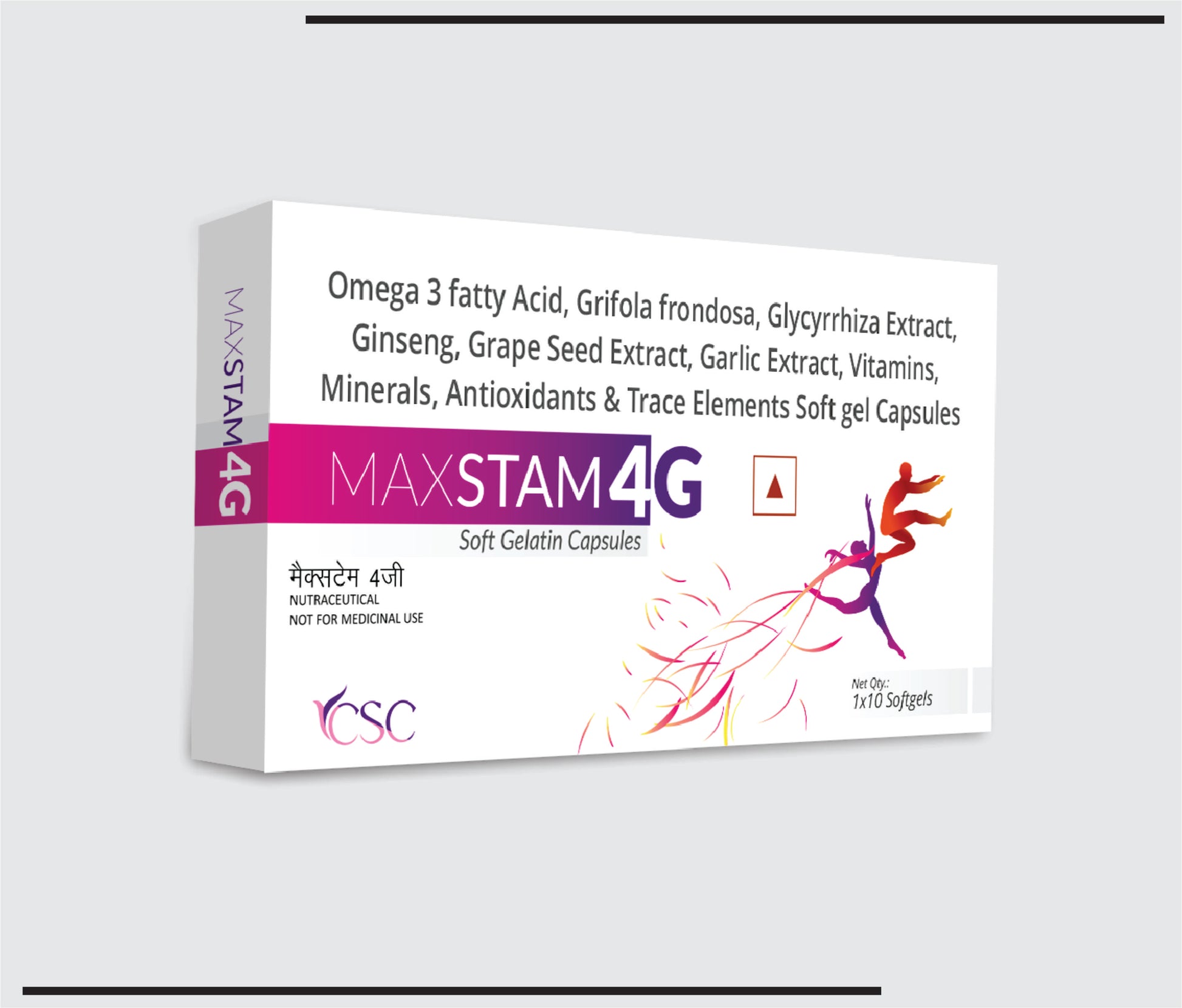 Maxstam-4G (10x1x10)Omega 3 fatty Acid, Grifola Frondosa, Glycyrrhiza Extract, Ginseng, Grape Seed Extract, Garlic Extract, Vitamins, Minerals, Antioxidants & Trace Elements Soft gel Capsules by CSC