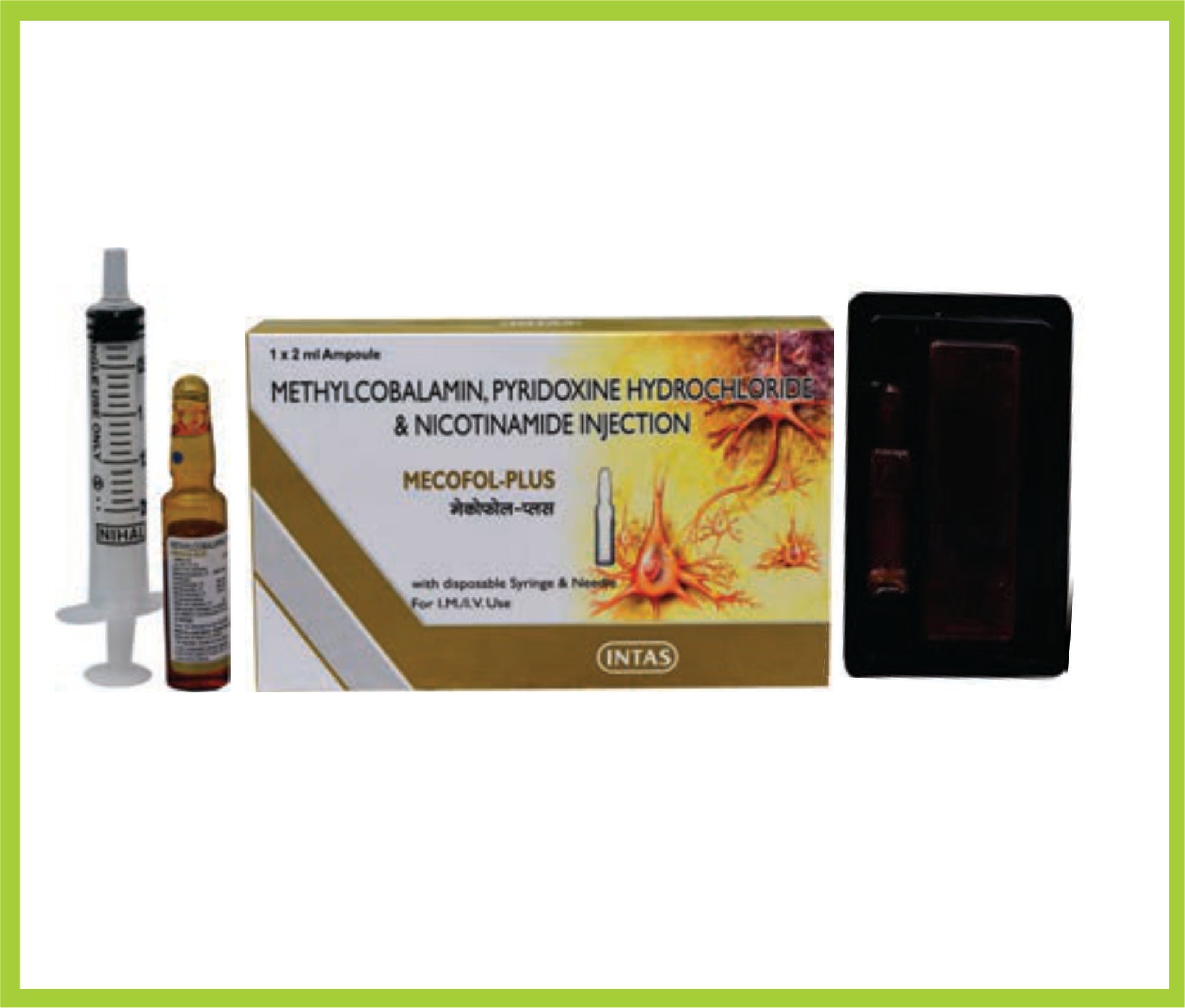 Mecofol Plus Inj 2Ml (Dispo Pack) Mecobalamin 1000 mcg + Vitamin B6 100 mg + Nicotinamide 100 mg by Intas