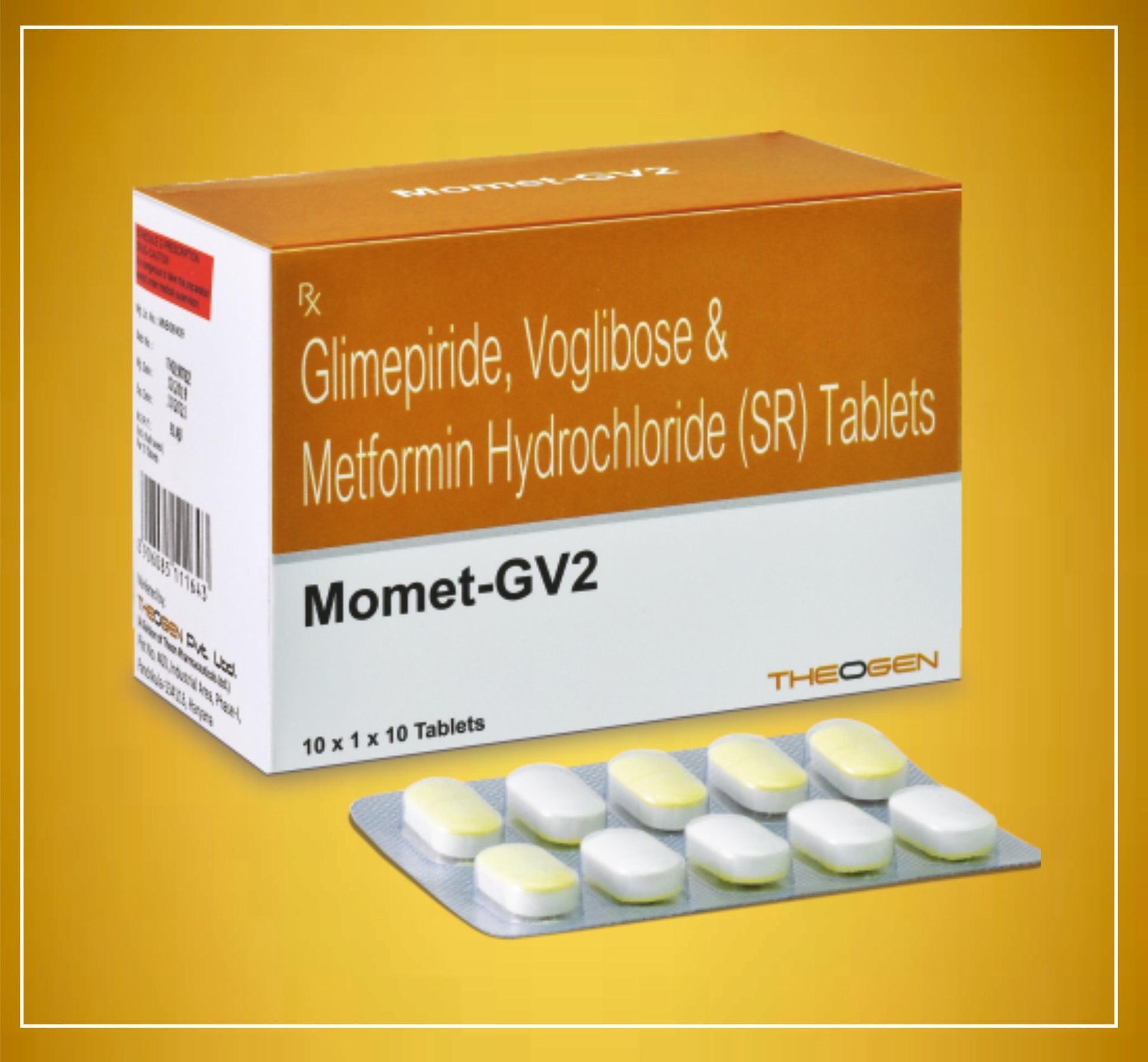 MOMET GV2 TAB 10'S ( Glimepiride (2Mg) + Metformin (500Mg) + Voglibose (0.2Mg) ) By Theon