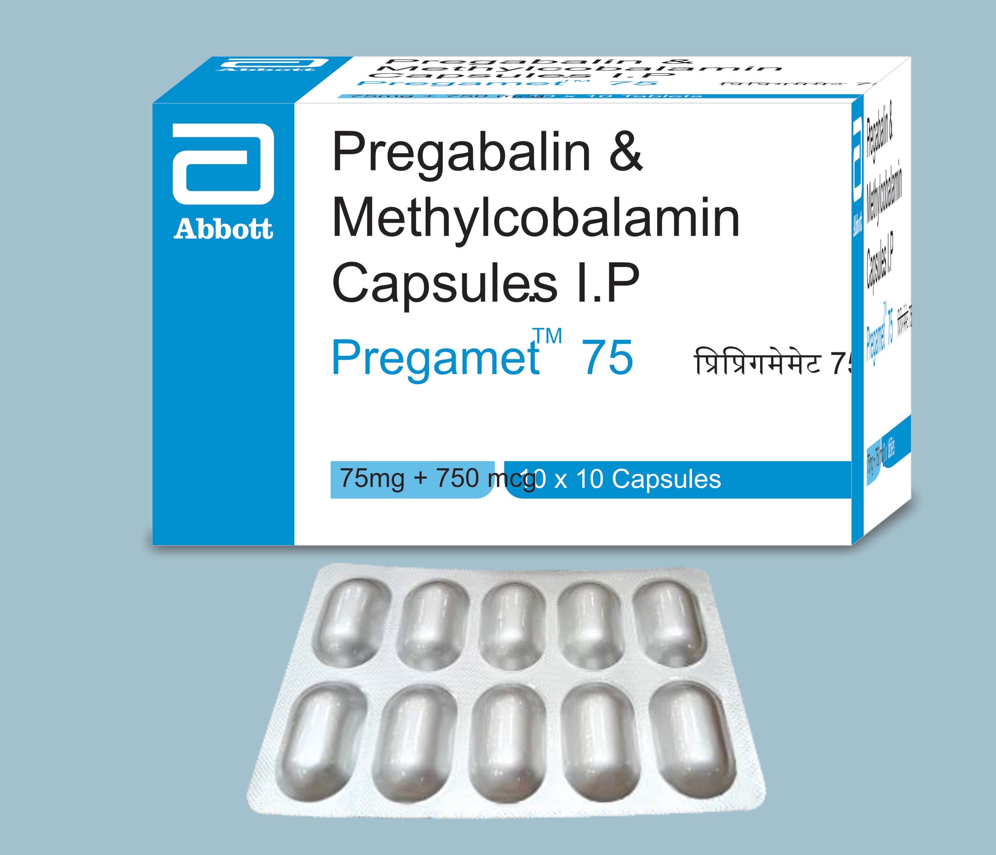 Pregamet 75 Capsules 10Caps Pregabalin 75mg and Methylcobalamin 750mcg by Abbott