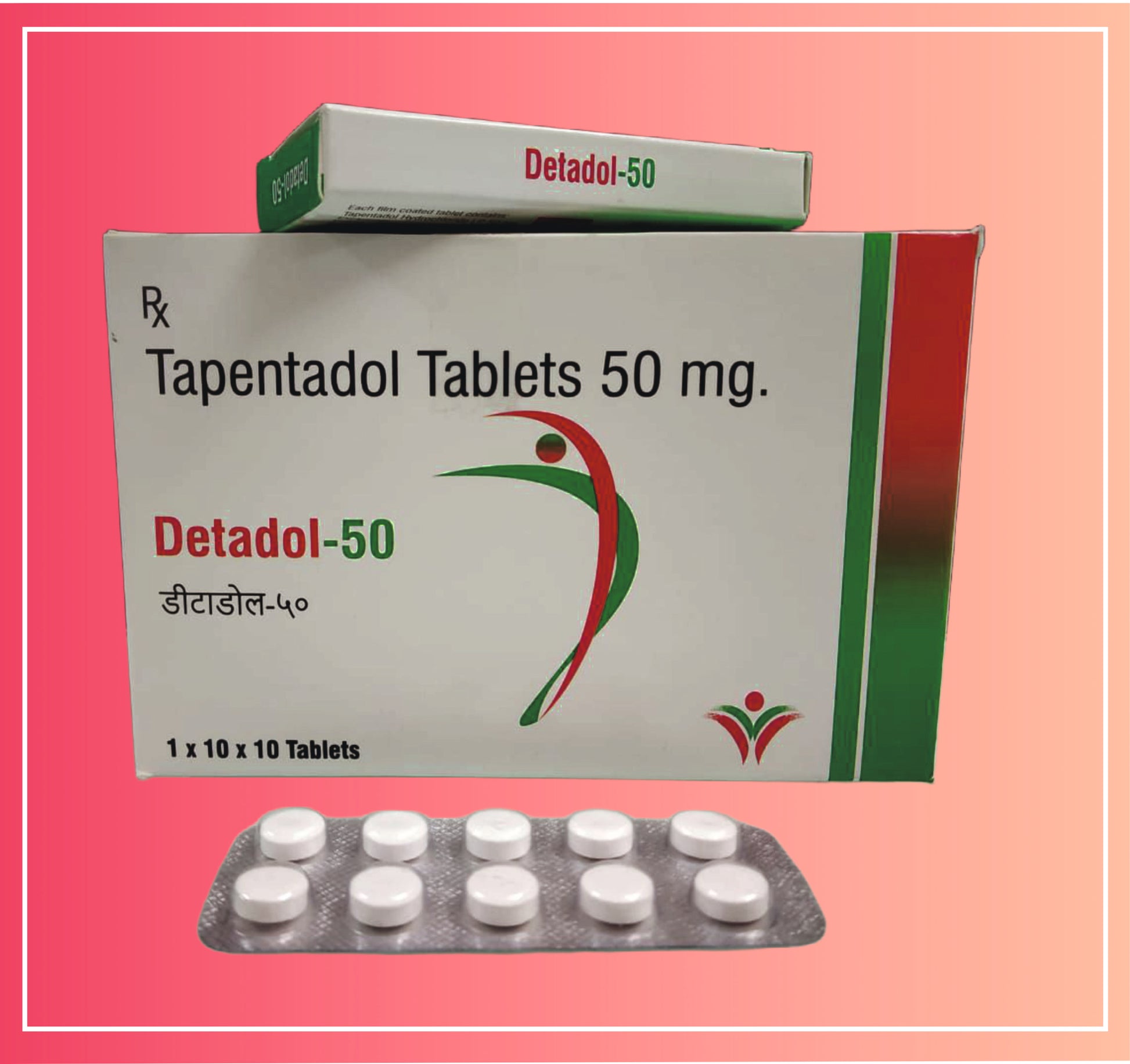 DETADOL-50 containeth Tapentadol Hydrochloride 50 mg, a centrally acting analgesic of dual mechanism, functioning both as a mu-opioid receptor agonist and a norepinephrine reuptake inhibitor. It is indicated for the management of moderate to severe pain, providing rapid onset and sustained relief without the gastrointestinal risks associated with NSAIDs.