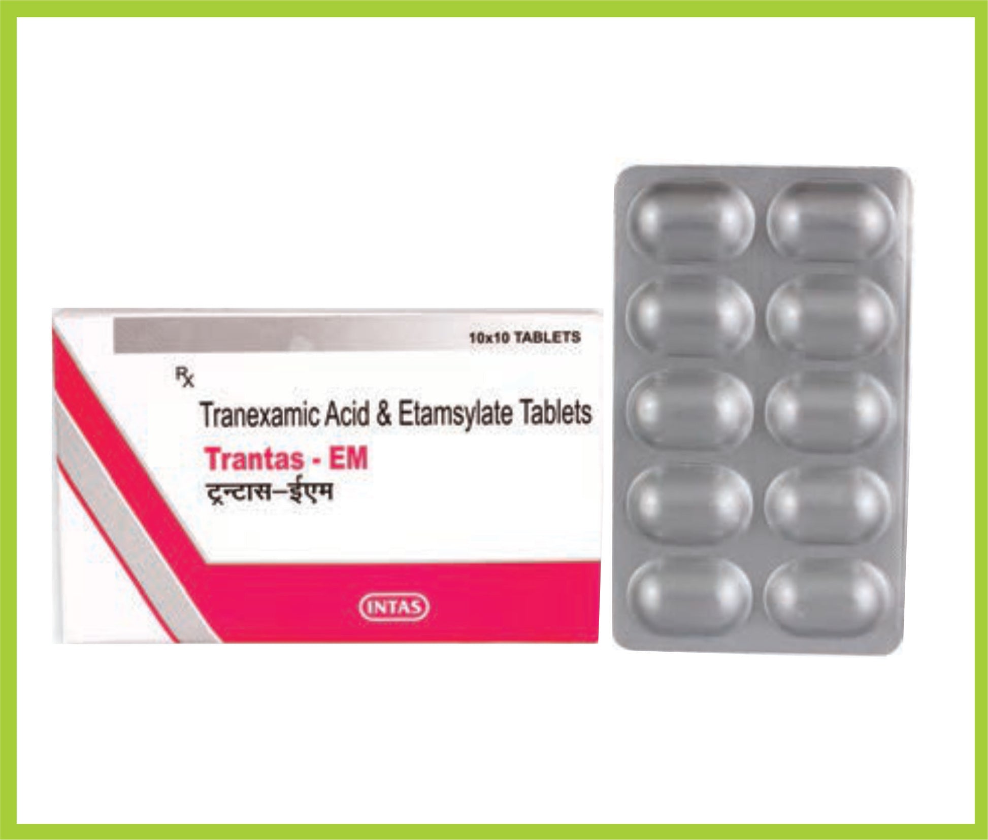 Trantas-Em 10 Tab Tranexamic Acid 250 mg + Etamsylate 250 mg by Intas
